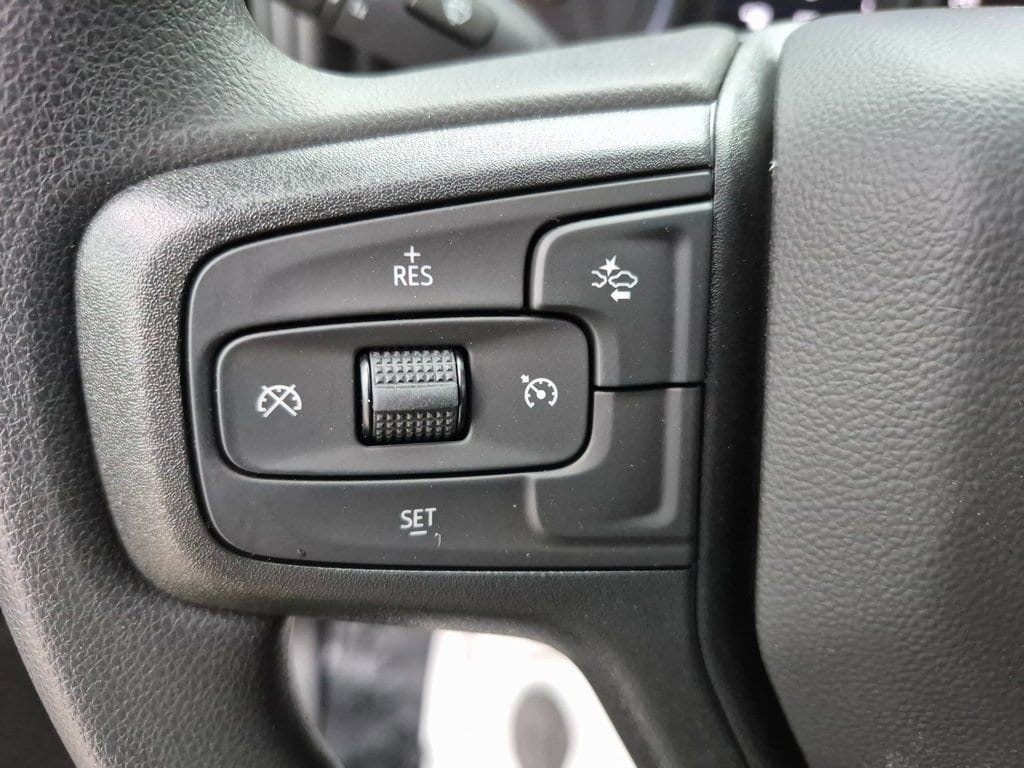 This Regular Cab SRW RWD truck includes important fleet features like Upfitter Switch Kit (5), heavy-duty 720 CCA battery, HD rear vision camera, Apple CarPlay/Android Auto, navigation, and durable vinyl seating.