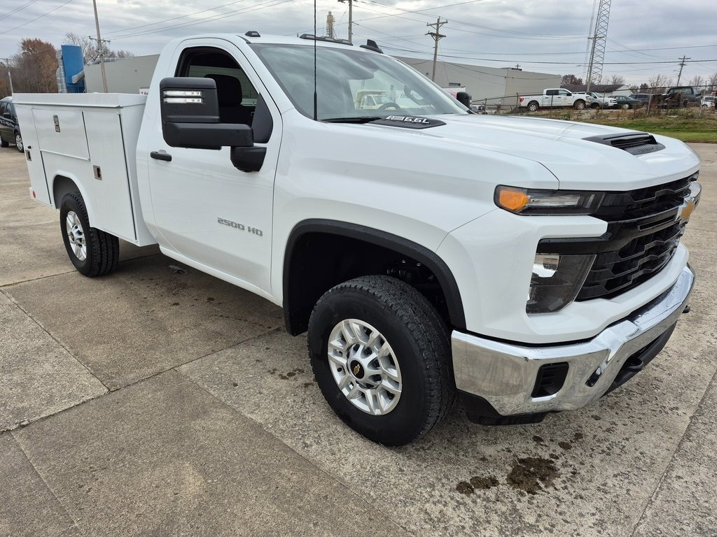 10-Speed Automatic, 4WD, Jet Black Vinyl, ***BACK UP CAMERA***, ***BLUETOOTH***, ***NAVIGATION***. Summit White 2025 Chevrolet Silverado 2500HD Work Truck Commercial 4WD 10-Speed Automatic 6.6L V8The dealer has added these accessories to this vehicle:- 8' Reading SL Spacemaker Flip Top Service Body - includes hitch. ($13,000) Upfit pricing may vary from similar models with same or similar upfits. Not all body upfits contain identical options. Pricing is based on specific upfit for that vehicle.Where Customers Send Their Friends Since 1929!!! Price does not include Tax, Title & License. Price includes: $1000 - Customer Cash. Exp. 12/01/2025