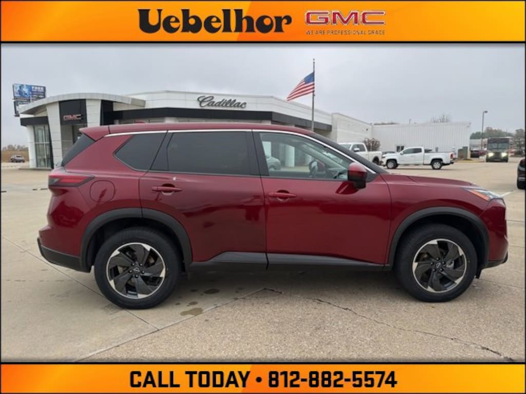 Discover the perfect blend of style, performance, and technology with this 2024 Nissan Rogue SV, JN8BT3BA5RW000257, now available at Uebelhor GMC Cadillac in Vincennes, Indiana. Powered by a fuel-efficient yet responsive engine paired with a smooth CVT transmission and available AWD, this Rogue SV delivers confident handling in any driving condition. Inside, enjoy a spacious cabin with premium materials, advanced infotainment featuring Apple CarPlay and Android Auto, and comprehensive safety technologies including blind-spot monitoring, rear cross-traffic alert, and automatic emergency braking. With low mileage and a competitive price range, this 2024 Nissan Rogue SV is an ideal choice for families and commuters alike. Experience exceptional value and service at a trusted Indiana dealership, known locally as Uebelhor & Sons Where Customers Send Their Friends.